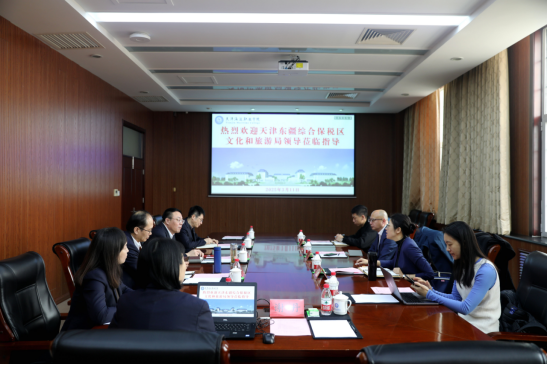 2025年3月11日,天津东疆综合保税区文化和旅游局杨柳局长、苏頔副局长一行到访天津海运职业学院,学院于忠武院长、王明春副院长及邮轮旅游系相关负责人共同会见并进行了座谈,双方围绕邮轮文旅产业人才培养、文旅行业标准建设及产教融合创新实践展开深度交流,共谋合作发展新路径。