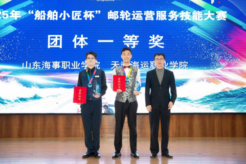 金秋绘卷,匠星熠熠;以赛促教,以技赋能。在刚刚落幕的2025年“船舶小匠杯”全国邮轮运营服务技能大赛中,天津海运职业学院邮轮旅游系2024级学生郭佳铄、杲鑫宇、周延燚组成的参赛队技压群雄、尽显锋芒,一举斩获大赛团体一等奖。