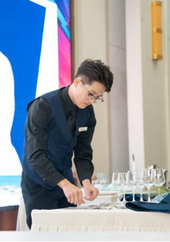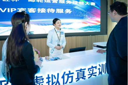大赛以“理论+实操”双轮驱动,全面淬炼选手的综合能力。理论赛场,是智慧与积淀的碰撞;实操环节则聚焦邮轮VIP接待、主题宴会设计与服务、酒吧服务三大实战模块,精准对标国际邮轮服务标准与行业前沿趋势,构建了“以赛导学、以赛强技”的育才新范式。