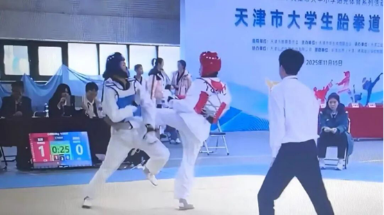 由天津市教育委员会主办的2025年天津市大中小学阳光体育系列活动——天津市大学生跆拳道比赛于2025年11月15日在天津工业大学举行。本次赛事规模盛大,吸引了全市33所高校423名运动员参赛,天津海运职业学院派出的11名选手参赛,经过激烈角逐,获得1金、6银、6铜的佳绩。