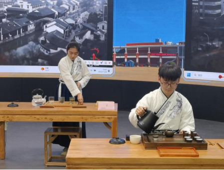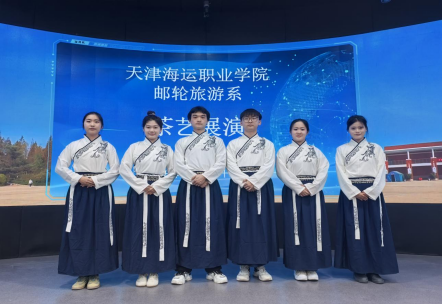 在专项展演环节,我系曲彦洁、李一民、朱起慧、康赳、张婕琳、何嘉祎等六名学生以原创主题《海上茶韵》为核心,系统呈现了从仪礼展示、器皿温润、汤色调控到奉茶有序的完整茶艺流程。展演过程动作行云流水,仪态端庄典雅,技法精准娴熟,完整呈现了茶文化在邮轮专业教学中的深度融合与创新实践,充分彰显了我院在传统文化与职业教育相融合方面取得的系统性育人成果。