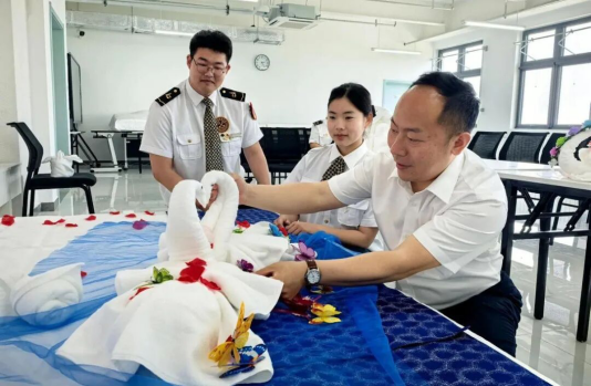 邮轮旅游系拥有高水平的师资队伍和高仿真的实训环境。专兼职教师60余人,双师型教师占比达90%,其中11人取得皇家加勒比集团培训师资质。校内海邮国际邮轮酒店全仿真建设邮轮餐饮实训室、邮轮烹饪实训室、烹饪展示实训室、烹饪大师工作室等,智能港船研训中心建有邮轮客舱实训室、邮轮宾客服务实训室、邮轮酒吧实训室、旅行社与OTA实训室、茶艺花艺实训室、智慧导游实训室、跨文化沟通实训室、管理信息系统实训室等,设备资产总值1700余万元。在满足在校学生实训实习需求的同时,还开展各类对外培训,满足社会服务需求。