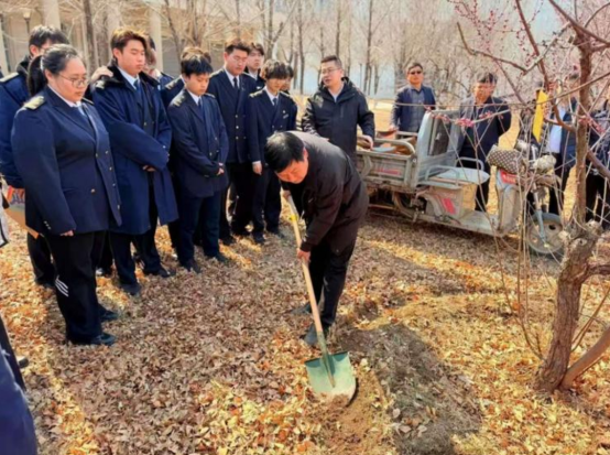 3月12日植树节下午,邮轮旅游系党支部与后勤与基建管理处党支部以支部共建为载体,联合开展“绿满校园 ‘邮’我先行”爱校护树活动,将学雷锋志愿服务与劳动育人深度融合。双方将组织生活搬到劳动一线,师生党员、团员青年开展树木养护学习、浇水护绿、悬挂手绘环保提示牌等实践。活动现场,同学们分工协作、默契配合,在拎水浇灌、弯腰松土的具体劳动中体悟雷锋精神,在守护校园绿意中涵养爱校荣校情怀。
